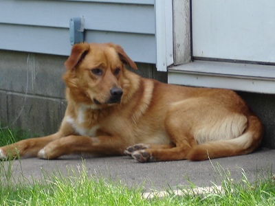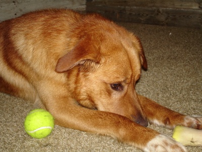 I promised you all pictures, so here you go. I will let you know Buddy is VERY hard to photograph. As soon as you try to get to his level, he'll run up to you to drool and give you lots of kisses. The only time I can get a picture is after I'm worn him out from playing fetch or him playing with the residential dog!