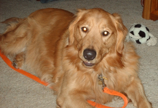 I love to be around people but when I get to play'in, watch out; once my big 'ol body gets to a moven, it just keeps go-in. I think it would be best if I went to a home with no really small kids as I might knock them down. Even through I like other dogs, I really want to be an 'only child'. When there are no other dogs around, I am so mellow....just a mellow golden fellow. I have included a few more pictures.
