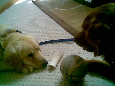 After being a little more accustomed to our home, she is coming out of her kennel more and likes to lie against the couch and have her belly rubbed. We found out that Cassie does have a voice and is learning to bark when she wakes up or when someone comes to the door. We are thankful she wasn't debarked as we feared, so any sound from her is bittersweet.