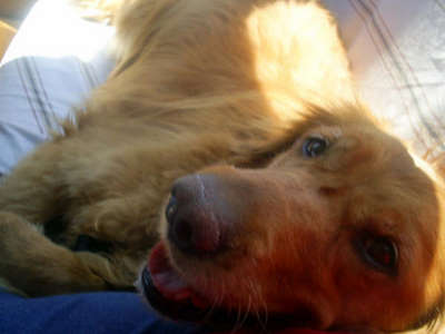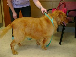 Cassie finally arrived in Cedar Falls Iowa after a long trip from South Dakota. Cassie has a rather sad story, but has sure begun her new life with her chin up! She was abused in her past, which is why the top of her head is shaved. Cassie has made a great recovery and gets a long well with cats and people. She has done well with the other two dogs here for the most part. The normal first meeting stuff went well with minimal growling. Had to determine the pecking order! She is house trained and LOVES LOVES LOVES to walk. She is not the best on a leash but with a gentle leader she is a dream. She is a little on the heavy side, so a home who loves to walk daily would be ideal for her. She also loves to play ball. We have played ball with her outside a bit. I am not sure that she has ever seen one before to be honest. She has one of the silliest little excitement indicators. Her ears perk up and she licks her lips super fast! She does it for toys or if you have food, but if you sit down to eat she does not beg. We are working with her on dropping the ball when we play and she is coming around. She is on the smaller side stature wise. She is by no means going to be a tall golden and looks like a weight of about 45 pounds will be about right for her. By no means does her small size means she lacks in personality! She is quite the ham!