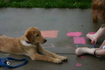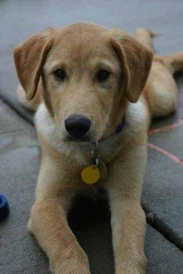 When he arrived he was stinky and covered in ticks, but a good dose of Frontline and a few baths has taken care of that! he is said to be a golden/lab/malamute mix - mainly looking like a yellow lab. Chance is very sweet. He is a little slow to warm up, but once he does he likes to be near you. He is very mellow, usually prefering to curl up somewhere by a window and by you and take a snooze as opposed to rowdy play. If we let him he would sit outside on our patio all day, soaking in the sunshine and watching the world go by.