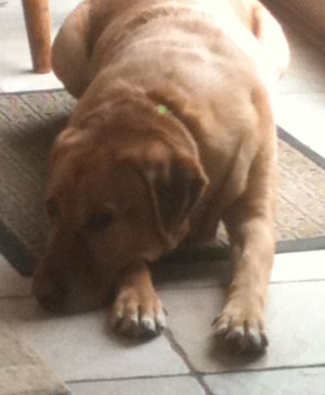 We have been spending a lot of time on a project in the back yard lately. Chance is just happy to be out there with me, he loves to find a nice spot in the shade and just sit and watch over the neighborhood. I have been replacing the fence and at times he has to be on a tie down in back and he is just as happy as you are out there with him. He does like to be outside more than his foster brothers especially when it is so nice out. When I go in his foster brothers follow me but most times I will have to call Chance in because he enjoys laying in the yard so much.