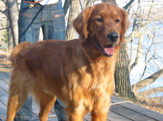 Charlie likes to chew things: bones, stuffed animals, balls, etc. He has no food aggression. He is starting to walk better on a lead, but still pulls a little; our ten year-old is able to control him for his walks though. Charlie likes to play tug and will fetch anything that is thrown. When he is outside we keep him on a long lead as we do not have a fenced yard. We were told that he is trained for invisible fences. Charlie is house trained and sleeps well through the night next to our bed (he would rather be on it though).