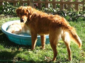 When it's 85 degrees in October, you are basically required to throw a pool party. Bishop and Charlie had a great time, right up until we capped off the event with a b-a-t-h. He was very patient for his bath and brushing.