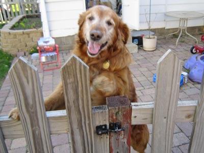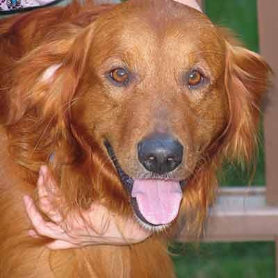 8/14/06 - Charlie arrived in his new foster home this afternoon. He has been very easy to have around, nuzzling everyone, following us everywhere and putting up with all sorts of loving from kids and adults alike. As you can see from the photos, he is a beautiful red color and somewhat large in size, around 75 pounds. He is estimated to be around 6 years old and seems to be very calm and easy going. According to the records that he came with, he lived on a farm previously and ran around freely. He has had some problems with ear infections and skin allergies, and is currently on medications for that. He is scheduled to be neutered tomorrow. There is also a record of his having Lyme disease, but he was treated for that and fully recovered.
