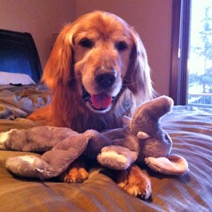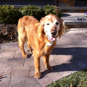 Welcome Puppy!   What a handsome, sweet boy! Puppy was surrendered to RAGOM from the Animal Control of Princeton, MN.  He was found as a city stray on 3/26/11 and held for 8 days. On the 8th day no one had come to get Puppy and he was schedule to be "put in the back" that afternoon due to over crowding.  RAGOM rescued him that afternoon and allowed Puppy to be held in boarding that weekend until our family could pick him up.  Puppy has been with our family since Monday, 4/4/11. Since Puppy was found as a stray the 2 Vets he visited can only estimate his age.  They believe he is between 8-9 years old.  He is also neutered and UTD on all his vaccinations.   Puppy weighed in at 43 pounds on 3/26/11.  His weight was a big concern as they estimated him to be 20-30 pounds underweight.  During his 8 day stay at AC he gained 8 pounds.  The first week at our home he gained another 5 pounds and today he weighed in at 61 pounds.  YEAH! Puppy is in great health and still loves to eat. We do 4 small feedings a day to make sure his stomach doesn't hurt.  The ideal weight for Puppys frame is 70.  He hasn't had any trouble adjusting to his new dog food or treats:) At first we were careful with too much exercise but now we do 4 walks a day. He loves to be outside and go on walks.  He is a great walker.  We use a retractable leash and he doesn't pull or walk too far ahead.  He also doesn't have a prey drive that you lose an arm if he sees a squirrel or bird.  Another exercise he loves is swimming.  He was the first dog in the lake last week when the ice melted on Prior Lake.