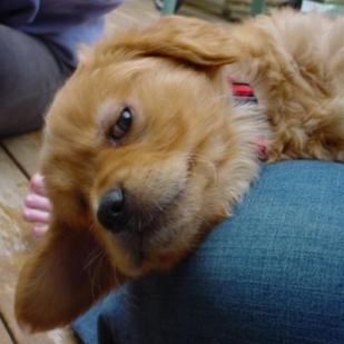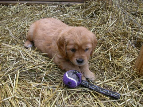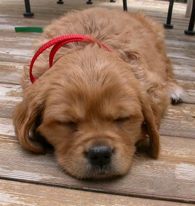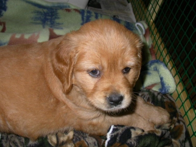 What we know about Clifford is limited. We were told both parents are purebred Goldens, but the litter was unplanned and they don't want the puppies. Therefore, he was turned over to a shelter on Saturday afternoon, he was processed and then given to RAGOM since he is so young and needed a lot of love and a germ free environment to get him through the trauma of being taken away from mom so early. So RAGOM did not allow Clifford or his brothers to stay any longer than they had to! The next stop would be to Aunt Steffanie?s house ? she was good enough to keep them Saturday night so my family could take a much needed night off from all dogs, we did not even bring the Newfoundland?s on our overnight excursion.