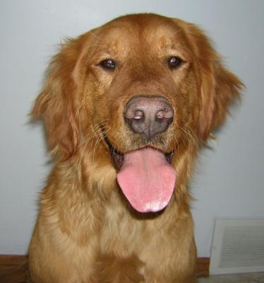 Coda is an eighteen month old neutered male, medium to dark gold, purebred. He is tall and his weight looks good as is. He was given up by a family that simply does not have enough time for him. He has met my crew and passed both the Lucky and the Zoe test...meaning he backed down appropriately when told to. He is currently trying to figure out what that 10 pound Calico thing is that keeps hissing and spitting at him, and it appears that the cat is winning. He will visit the vet early next week and after that he will be ready to go. More on him as I get to know him....as of right now he's only been here for an hour.