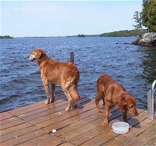 Boy, am I having fun. Last weekend I went up to dad & mom's cabin on Lake Vermilion. I showed them what a great swimmer I am. They never thought that I'd swim so far out to retrieve anything & everything. I even went to retrieve mom when she jumped into the water. Well, I thought she was drowning. I just love to swim so much that it is hard for me to stay out of the water. I like to play in the water even when I'm not retrieving. I finally got out & dried off.