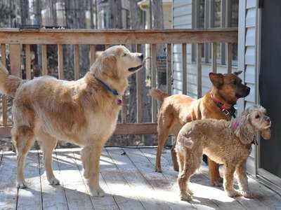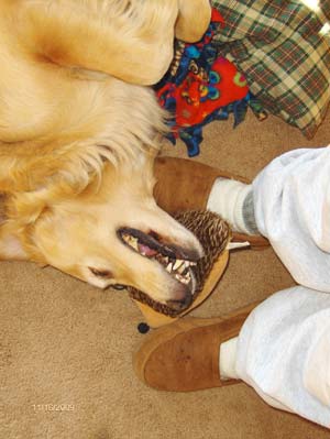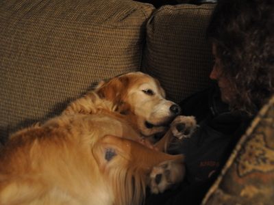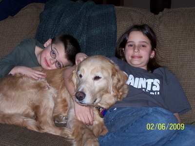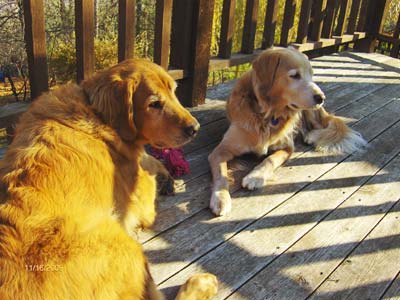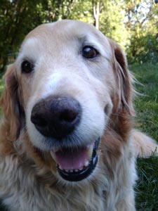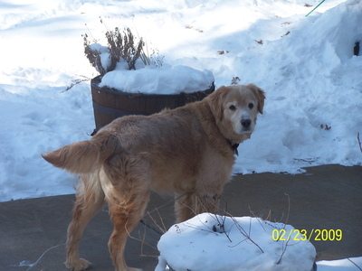 With heartfelt sadness we assisted Copper to cross the Rainbow Bridge September 30, 2010. Copper was a great addition to our family when we adopted him in Nov '09. Our existing 9 year old golden -Tobi- was very excited to have a new buddie to play with as were we. Copper began to limp in his front left leg off and on beginning in May or so. We thought that he was just overdoing it and strained something during his digging in random places out in the backyard or the mouse hunts he would go on. It progressed to the point that he wasn't walking on it at all and was losing muscle mass in that leg. With the help of our vet we decided to head to the U of M in August. There we found out with a CT scan that he had a nerve sheath tumor that was inoperable and untreatable. The vet at the U recommended pain medicine but that Copper may have 2 months to live. We brought our sunshine home. His spirit never failed thru the entire process. Still running on his 3 legs to tree squirrels, investigating every wood pile on a daily basis and playing bouncing around. He would have good days and he would have bad days that were unbearable for everyone. The pain that he endured I couldn't imagine. Being unable to help was heartbreaking. Yesterday morning things changed for the worst. His left leg which is the leg that the tumor attacked first was ok - no change. But his right leg was swollen up like a balloon. Touching it made him whimper and cringe in pain. I looked at Copper and he at me and decided it was time.Since he could barely walk on either of his front legs - I carried him to the truck and off to the U we went. Once there - again there was nothing that they could do. We said good bye to our friend as the angels called Copper home. Now having a fully functioning body and being pain free and the sun on his face across the Rainbow Bridge. Copper, our friend and my shadow. You were quite a warrior during your illness. Really giving it everything that you had. Not letting it slow you down or dampen your spirits. We miss you muffin. You have touched our hearts and our souls. Thank you for coming to us for the time that we had together. Your presence is felt here as well as your absence. Peace be with you Copper! Lisa, Dale and Tobi