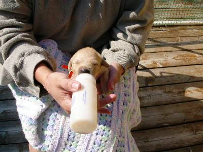 Dahlila is doing wonderful with bottle feeding and she also loves to try and get milk from mom.  When it happens we are very happy, but when the puppies are crying and trying to get milk we know we have to help.  She was so hungry this morning she just ate 4 oz.