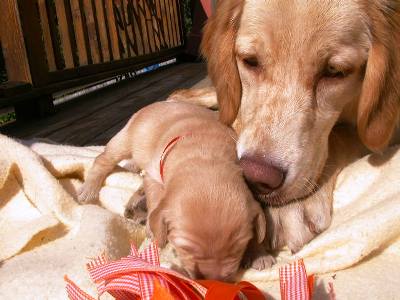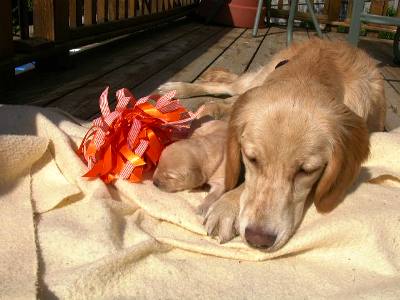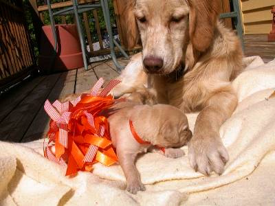 Dahlila – Lilah – Turns 4 weeks tomorrow!  Can you believe it?  I can’t, these guys are great puppies and now they are working on potty training.  We built them a little puppy ramp so they can get out the door and on to the deck.  It is so fun!!!