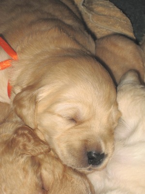 Than when she gets cold she cuddles as close as she can to her brothers and sisters.  Dahlila is by far the biggest of the girl puppies.  She now weighs 3 pounds and boy does she look well feed.