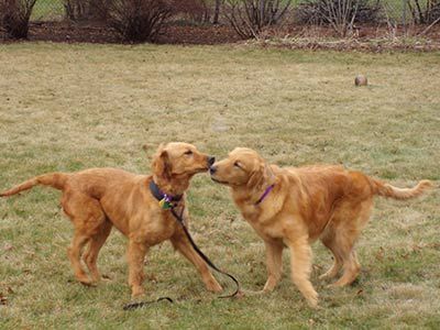 What a week Daisey has had!  She was joined last Saturday by Mimzy, another ND girl who needed a home with a fenced in yard.  The two girls got along instantly and can usually be found together.  They love to run and romp in the back yard and can sometimes be found in the crate together.  Daisey is learning what toys are for.  She will now chase after tennis balls and carry them around.  She likes to chew on her Nylabone and has pulled a few tennis balls into her crate.