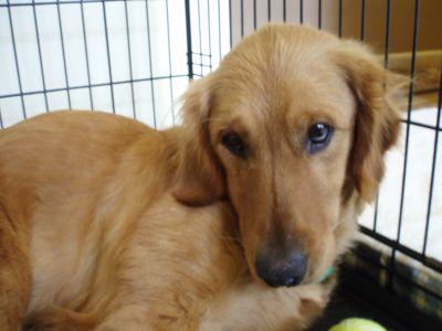 3/30/07: Daisey has been with me since Saturday, March 24.  She is from North Dakota, and as you have probably guessed, is one of the puppy mill dogs.  A lot has happened to Daisey in the last few days, and for someone so shy and timid she has handled it like a trooper.  The first night she came home she made a run for it.  Fortunately I have a fenced in back yard so she didn't get very far.  Oh, but did she have fun running around the yard.  After spending all day traveling to get here I imagine it felt really good for her to stretch her legs.  She will definitely need to find a forever home with a fenced in yard.  In the house she is very quite and prefers to spend her time in her crate.  She does great with Mrs. Bigglesworth and PJ, the two resident cats.  She shows some interest in them but for the most part just ignores them.  She loves to get attention in the form of pets and scratches to the neck and behind the ears.  If I stop she will nudge my hand to continue.  She hasn’t shown much interest in toys yet, but will take my shoes and bring them back to her crate.  Fortunately for my budget she does not chew them!