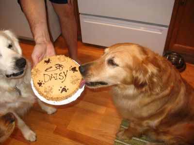 Today we were able to celebrate a very special day with Daisy, she turned 7 years old! We sang, we had cake (everybody knows diets go out the window on your birthday), and she even got two new presents, a brand new collar and a stuffed lamb (which was completely destuffed in under 5 minutes).