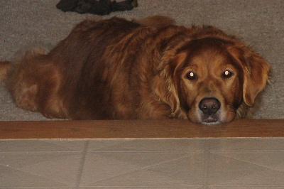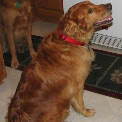 This is Sparky, a spayed 6 year-old purebred Golden Retriever who is UTD and in very good health. Sparky was surrendered to RAGOM because her owners didn’t have the time to give her the attention that she needs. They left her alone during the day with food always available, so she has some weight to lose. She weighs about 84 pounds right now.