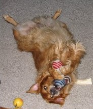 During the day, Sparky has the run of the house with our resident dog, but we have to make sure to keep the closet doors closed because she likes to bring us our shoes. She hasn’t chewed any of them, just brings them out to us. She prefers to chew on bones.