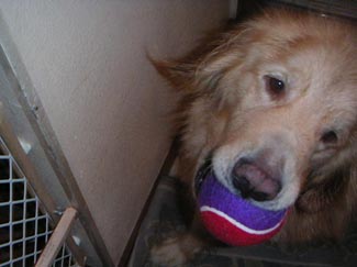 Bushido (boo she doe) has arrived. He was given this name as its origin is for 'the code of the Japanese Samurai'. This boy has been starved, ignored, and kept locked in a garage, yet he has survived, he is a warrior. Bushido was a stray, impounded, owners found, owners surrendered. Fate was finally kind to this poor boy. He is now on his way to a Golden life and being a RAGOM boy forever. He is about 3 years old.