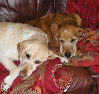 She loves our dog Sadie and they all sleep together. She is very active but is showing her age a little if she runs after the kids up and down the hill while sledding. Dr. Globus has been very generous in discounting her services for RAGOM making it possible to give Delilah a life worth living. She no longer itches and rolls until she can't stand it. She used to chew herself bloody and now she is just a content dog with a slight ear infection.