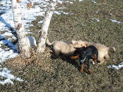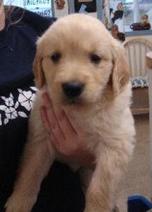 3/31/07: I am the smallest of my family, but not by much - and the way I eat, it won’t be for long. I am known for my grunts. All puppies grunt when held but my grunts are unique. When you’re one of 5 you have to find notoriaty where you can. My claim to fame on the TV was quite embarrassing. As my foster mom was bringing us out to meet the news lady and the camera man, I stepped in some doo. So in front of the world I was shown having to be washed off. Hey, do you think my name being Dewey has anything to do with that doo episode? I shudder to think of the world knowing me for that!