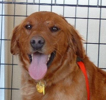 Didi is a 3 year old female rescued from a puppy mill. She was no longer useful to them because her litters were too big and made too much work for her breeder. RAGOM was called to rescue Didi and 2 of her mill-mates, who will now have a chance to live long lives as happy, warm, well fed, & loved members of some very lucky families. Didi is 62 pounds & on the petite side. She just got all her shots & microchip, and will be spayed on Tuesday. I heard stories about dogs that come from puppy mills, and luckily, Didi fits none of them. She is very outgoing & friendly, she loves to play with toys & bones, she is very gentle with my children (ages 3, 5, 8) and gets along well with the dogs here. She walks well in a harness & wasn't too fond of the Gentle Leader we tried (but what dog is at first?). Didi seems to enjoy stealing stuffed animals from the kids and hiding them in her kennel. Luckily, she doesn't chew on them at all. Typical Golden...