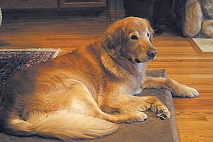 Though he will be 13 on August 7th he is very healthy. He has no problems climbing up our stairs or jumping into our car. He is very gentle and extremely well behaved. Dorus is being fostered in Stillwater, MN.