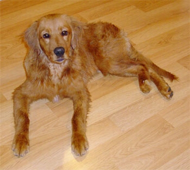 I can't tell you enough what a great personality Dos has. Even though he has puppy energy, he still behaves very well for a 6 month old puppy. As he gets older he will be a pretty mellow Golden. Dos is still getting used to the cats. He just wants to play, but the cats don't appreciate it much. He loves everyone. He couldn't wait to meet and see all the people at the vet this morning. He is just a happy-go-lucky little guy.