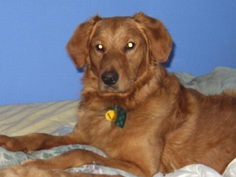 5/1/06: Duke has come back into RAGOM because his family didn't have enough time for him, therefore Duke spent way too much time in his kennel. He is settling in very nicely, although it took him several hours to calm down--understandable for a 2 1/2 year old dog. I caught him drinking out of the toilet this morning and out of a bucket of water that I had washed his feet in. It was in a most inconvenient place, too. He had a fresh bucket of water right next to his food bowl!