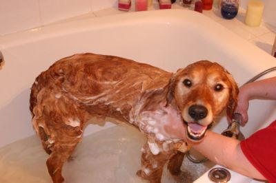 Dusty will require grooming daily, as his hair is longer and curly in places. We spent about 2-3 hours grooming him the first day we had him due to the lack of care he had had recently. I cut out about 25 mats in his hair, mostly near his curly hair on his hind legs and under his ears and we gave him two baths (the Humane Society smell wouldn’t come out!). Management of his hair may become easier once Dusty has been on a healthy diet for a while, as that generally improves the coat.