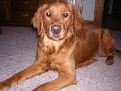 Emma has been here for just over 24 hours. She is a gorgeous 1 1/2 year old medium red little girl. She weighs 54 pounds, is up to date on her shots, spayed, chipped and as of an hour ago, newly bathed. She has ear infections...but it seems like all of my foster dogs have ear infections so that's no big deal. She is crate trained and spent most of today crated with a couple of hours reprieve around midday. Last night she slept with us babygated in the bedroom with a couple of interuptions of wanting to play in the middle of the night...and I think her ear hurt as well. She gets along with both of my guys, and is a bit intimidated by the cat. She LOVES people! She came with a bag of toys and can entertain herself for a long time. More later as I get to know her.