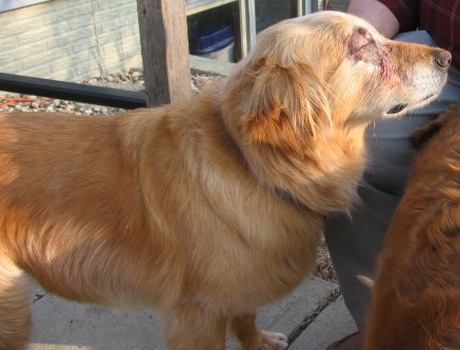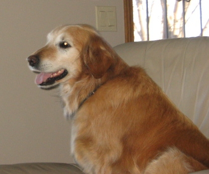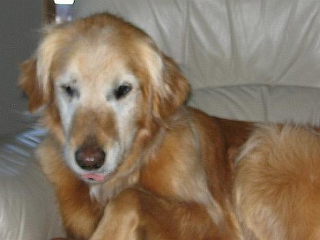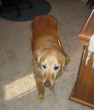 Emma is a very happy, beautiful, warm, loving, great dog. We are thinking she is more 7-9 years old however instead of the 6 originally thought. Emma has a great appetite too! She gets 3 smaller servings a day to get over the tremendous need to feed yet. Emma is on Nutra Natural Choice for Seniors with glucosamine. She has only had a 3-4 accidents in the house due to post-surgery and possible weaker bladder. Emma will definitely need a fenced yard, as she loves to lay outside in the sun and watch (one-eyed) the world go by and smell the air! She needs someone understanding of her past and current condition. She has the best personality you could want! Beautiful blonde Golden, great coat, great teeth and just perfect…