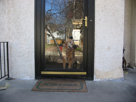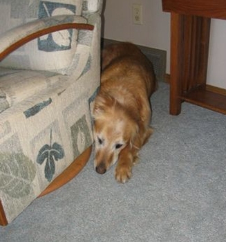 3/20/06: Here is a story about Emma girl. On Saturday, March 18, 2006, we happened upon her while driving around with our 14 month old granddaughter, Lauren, and decided to check out a new rescue facility which just opened up a week or so ago called Second Chance Rescue, just 10 miles maybe out of Sioux Falls, SD. Not long after we entered, I saw this Golden sitting in this small kennel with her sad eyes and a tail waggin?! Well, could not have that! We checked her out and got some photos of her there. Gosh, what a wonderful girl. We of course asked about how she happened to be in their rescue facility. She was a stray, found about 3 weeks or more ago about 30 miles south of Sioux Falls. They did all the proper notification and no one came forward. So she stayed at their new rescue facility which is just getting off the ground. She was in a small kennel, 6 X 6 maybe. Clean etc. and ever so lonesome of course! I of course decided the next day we would go save her. I talked with the owner, told her about Ragom, and here she is! The rescue place did waive her fees - very glad to hear about Ragom and this beautiful girl had a place to go!!