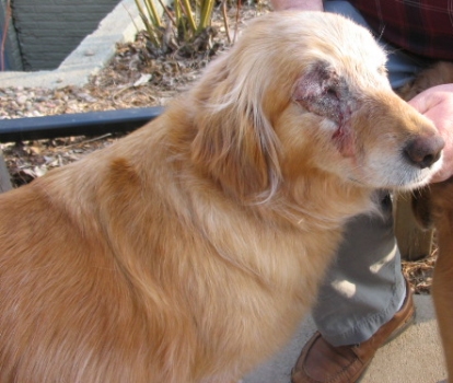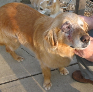 I do believe the progress of eye loss is hard for her?and we too need to be more aware of this blindness in her right eye and proceed from there. She is not in any pain that we can see or discomfort. We are putting in antibiotic drops in 1-2X day. She is a gorgeous blonde as you can see. She is about 70#. Very nice coat; wonderful perfect teeth; spayed and now today, current on everything. Little gassy thing going on, however, who knows what diet we have been on or where we have been for the past 2 months or more?