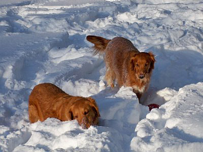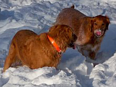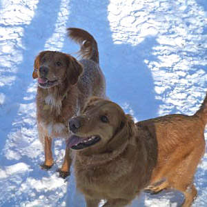 Emma is waiting to fetch her ball!!! Emma is furthest from the camera.