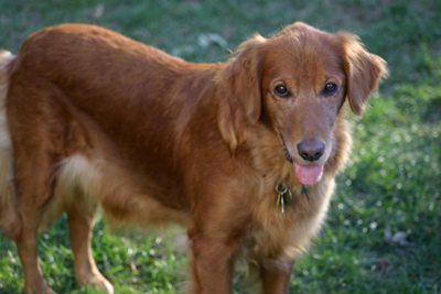 Emmie initially came into RAGOM weighing in at 81 lbs., she has since gotten her girlish figure back and looks GREAT! She has begun to relax and initiate play with her foster brother Wyatt and foster sister Sassy. She has also started chasing her tail which is pretty funny.
