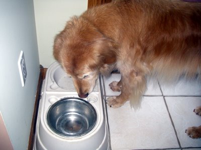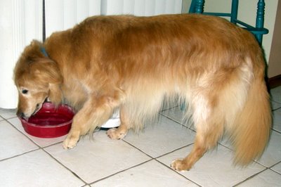 I am happy to report that I weigh 60 pounds now. I eat puppy food with a little extra chicken added. I love it and my coat is luxurious and soft and my skin is nice and soft and I have more strength now to get up and walk around. I don't think my fostermom really described just how skinny and weak I was when they first got me. But now, I'm really healthy and a good weight.