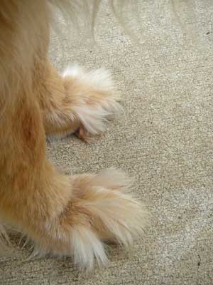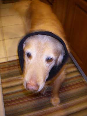 I don't have a whole lot new to report. I did have to go back to the vet this past week. No, no recent scuffles with Shane, but rather, I had a sore spot under my collar that had gotten infected. The vet and my fostermom think that in one scuffle, I must have gotten bit, but it never bled or looked like a bite, but it all got infected under the skin. My fostermom was petting me on Tuesday and noticed a really bad smell coming off of me and in seconds, I had this really nasty wet sticky stuff all over my collar and neck. That's when she called the vet. I went in, they shaved my neck and discovered I had a pus pocket that opened up. It's healing up nicely, but my fostermom has to give me big antibiotic pills, skin spray and has to do warm wet compresses twice a day to help the infection go away. Only my dignity hurts, since I'm shaved. I look kind of silly.