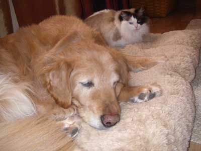 Emmit snoozing with Sugar...