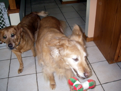 Speaking of Shane, he and I have come to a truce. I avoid him and he avoids me. My fostermom figured out that the biggest problem between us is that I'm deaf and can't hear Shane when he's telling me to back away. Yep, you read that right, I'm deaf. I also don't make any noise, I don't bark, whine, talk, nothing. I do groan a little when I get petted "just right" and I snore, but other than that, nothing. So my fostermom makes sure that Shane and I are not put in a situation where I might misunderstand him. He's come up to me a few times and offered me a toy, and happily wagged his tail and one day he even gave me a kiss on the cheek, but I find it easier to just ignore him.