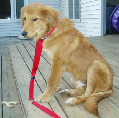 Foster mom had a bit of a wake up call this week. I took Ernie to a RAGOM meeting and he did ok with some dogs, got a little growly with a few others, but we know that is going to happen and are working on socializing him with friendly dogs. However, dumb foster mom is sitting at the meeting, scratching Ernie's neck and thought, gee, your collar seems sort of tight, so loosened it just a little. Completely forgetting that it was tight on purpose so that he didn't slip out of it backwards and get loose. You guessed it. We walk out to the car after the meeting and Ernie walks pretty good on the leash, until you get to the car, then he stands up and wiggles and tries to get away and in this case, did. Slipped right out of that loosened collar. Scared the bejeeminies (sp?) out of me. We got out hot dogs, french fries and tried to get him to come over, but he's smart enough to realize just how far away he has to stand that your arm can't reach him. Luckily, another volunteer came out of the building with their foster dog. He ran over to the other dog and another volunteer was able to grab him. Needless to say, Ernie will now be sporting a Gentle Leader when he goes on visits in the future. I only have a large GL at the moment, so if you see this little dog with this big GL on his face at the PetCo event, you'll know it's Ernie.