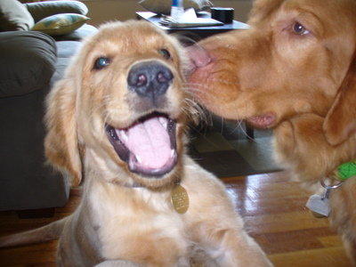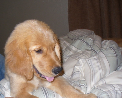 Meet Theodore, (or as we call him...Teddy), a beautiful 10 week old Golden male. Teddy has been with us a couple of days now, and seems to be adjusting very well! Teddy came from an outdoor setting where he was around other grown up Goldens. Therefore, when Teddy got to our house, he was fast friends with all the dogs. He is obviously still getting the hang of this "humans" business, but seems to be pretty happy about having humans who love him.