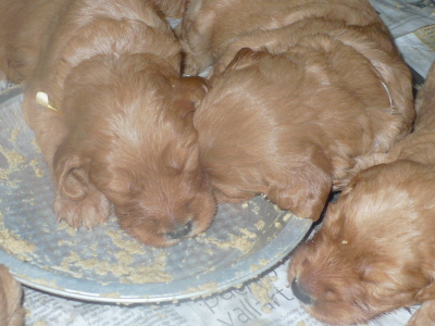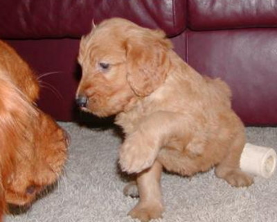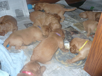 These guys are all so active now and are driving their mom crazy:) They love to sink their teeth into anything they can. I have put all sorts of chew toys in their pen. Whenever we go in to clean or play they love to chew on us and those little teeth can sting:) But it's all worth the fun of playing with them. My resident dog likes to join them in the pen and play with them too. She is like the auntie that gives poor mom a break:) Mom is still letting them snack but they are having 3-4 regular meals and drinking water too. I will have to start thinking about the weaning process soon. I'm sure Lauren won't mind too much not having those teeth on her:) I am also going to start getting them used to being crated for short amounts of time and take a trip outside when it's not too cold.