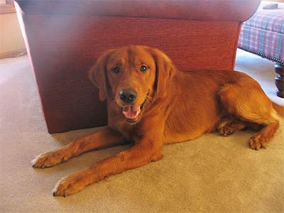 This is Frank, the Love Bug! Or Olympic Swimmer! Frank came to us after riding in a car from Wilmer, Minnesota to Johnston, Iowa. He curled up and slept the whole way in the back seat. He met our two resident dogs like they were his best friend! :) Frank loves other dogs and plays with our 8 year old. He is not obnoxious about it though and will stop if asked too. He is on the small side, is red, purebred with a short, soft, beautiful coat. He knows, come, down and sit. He appears to be very smart and picks up quickly on commands. He was found as a stray and the person who rescued him can't care for him in their tiny apartment. Frank is underweight and not up to date on his shots.