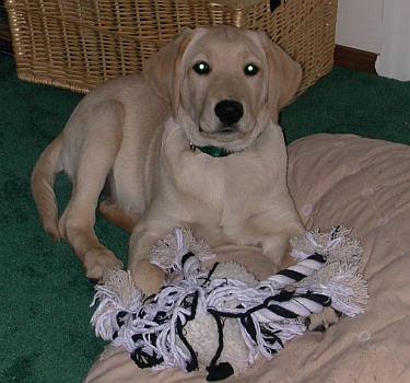 Wrigley has not had an accident in the house in almost 3 weeks now. While I certainly would not let him roam by himself for any length of time he does let me know if he wants out now so a definite bonus. He enjoys retrieving but also enjoys wrestling with his toys too...he is still a chewer though he has not destroyed anything of significance in the house. Wrigley is pretty good around me but when someone new comes over he is pretty nuts. He likes to lick, nibble, and jump. All in all he seems to be getting better in all phases though. I am confident the biting and chewing will go away with age...biggest concern is the jumping but he seems to be getting better with that too.