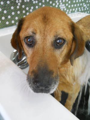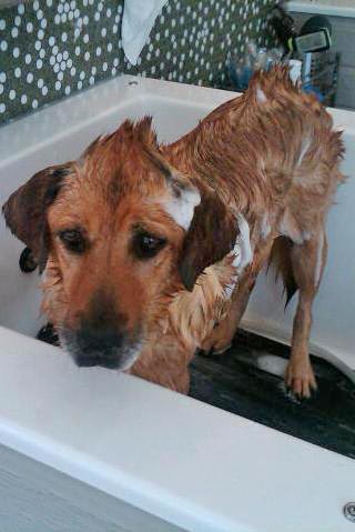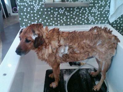 Oh my gosh, I couldn't wait to share this picture. I took Miss Georgia Brown to Bubbly Paws to get her squeaky clean and she made their Facebook page. Below is the picture they posted. She is so cute!