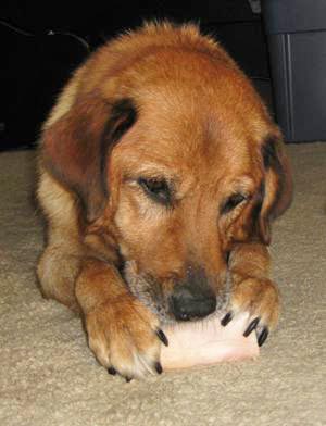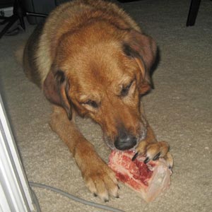 I missed her while I was gone, so I gave her a marrow bone as a gift for being a “good girl” while being away. She loves her marrow bones!