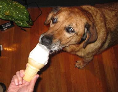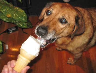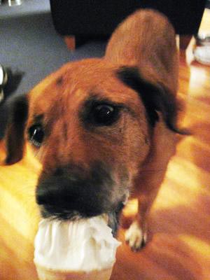 We just wanted let you know Georgia has found a rival to her chew bones…ICE CREAM!!