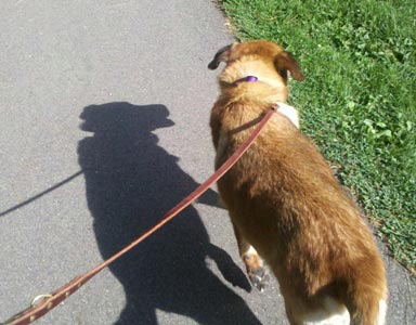 Tonight when I got home from work, I let her out to go potty. We then came in and she ate and I filled her water. She gracefully let me enjoy a meal, and then she was ready. It was time for the evening walk.