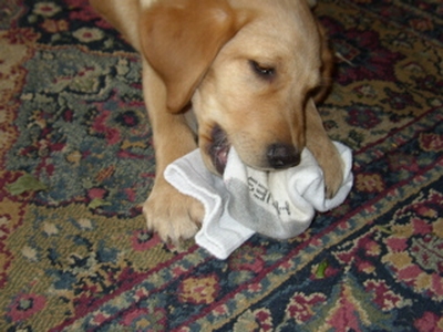 No need to buy toys . . .Yeah, I broke that flower pot - but I'm cute.Hit while the belly is upWho has sharper teeth, a walleye or a puppy?There are plenty of leaves - why does mom keep saying NO!Who needs a pigs ear?